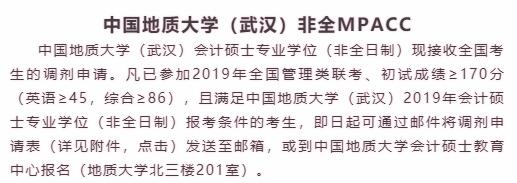 以上是小編整理的“MPAcc接受調劑的院校 | 中國地質大學(武漢)2019年接收非全MPAcc調劑的通知”,更多關于MPAcc院校調劑信息,盡在調劑欄目,預祝大家考研成功!