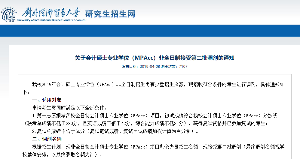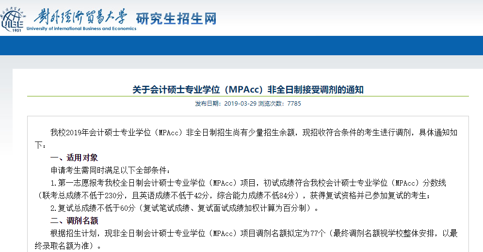 以上是小編整理的“MPAcc接受調劑的院校 | 對外經濟貿易大學2019年接收MPAcc調劑的通知”,更多關于MPAcc院校調劑信息,盡在調劑欄目,預祝大家考研成功!