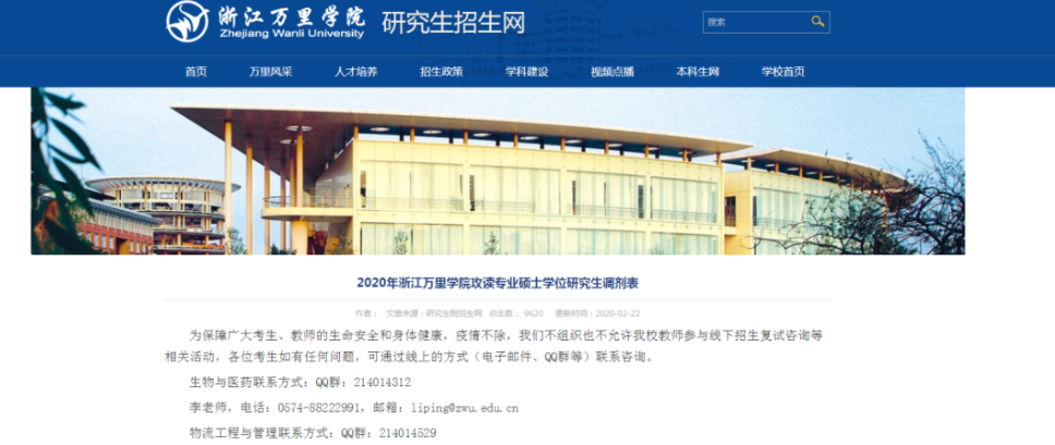 1、申請調劑的考生自本信息發布之日起可在浙江萬里學院研招網下載《浙江萬里學院2020年攻讀專業碩士學位研究生調劑表》(也可通過掃描下面的二維碼獲取),填寫相關個人信息,并通過郵件發送至shenghuan2012@163.com,郵件主題注明調劑申請和本人姓名、本科學校。