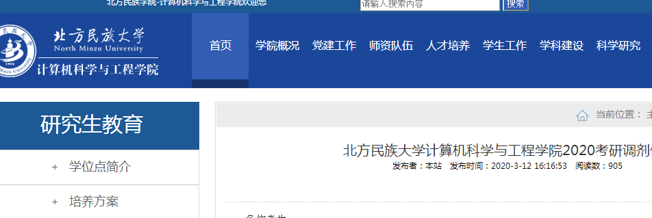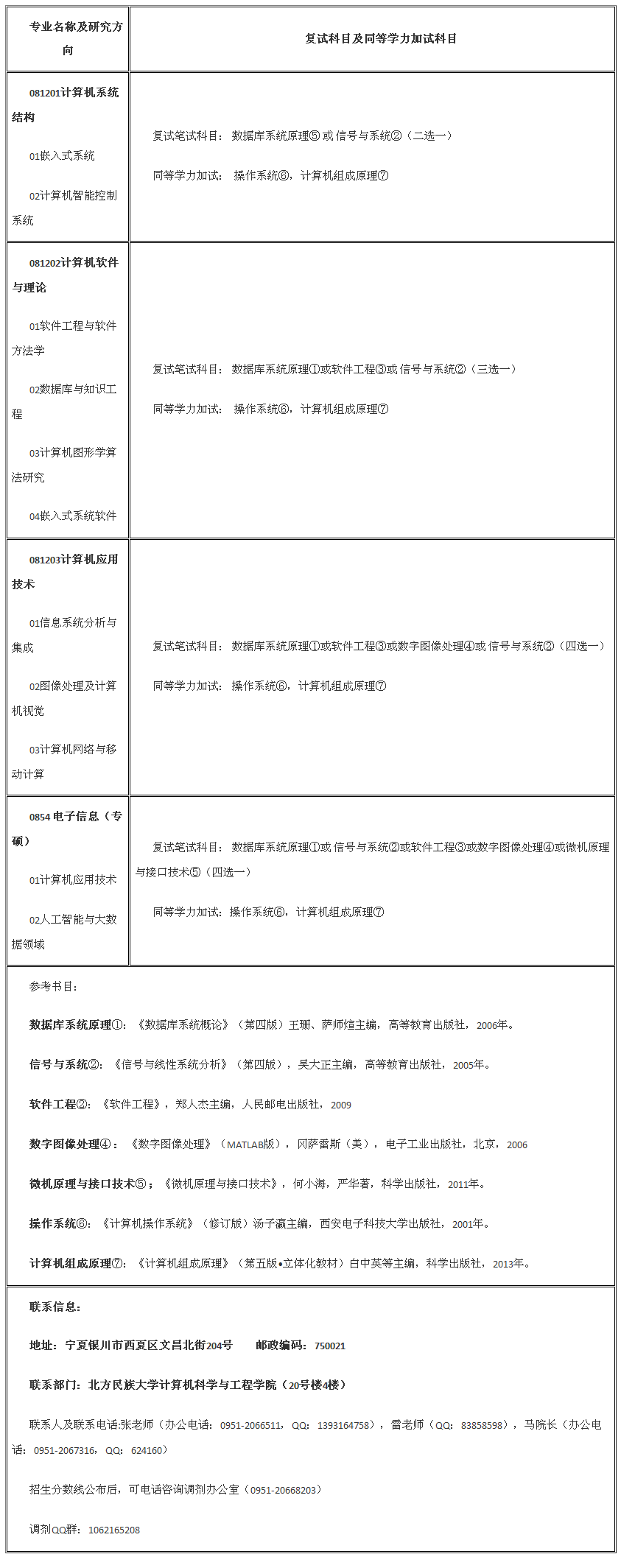 以上就是“2020考研調劑信息:北方民族大學計算機科學與工程學院2020考研調劑信息”的全部內容!更多考研調劑內容,請關注考研調劑信息欄目!