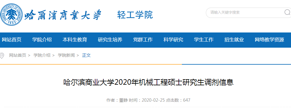 對(duì)于想調(diào)劑的同學(xué)來說,考研調(diào)劑信息很重要,但卻不知道哪里找?現(xiàn)多數(shù)院校已發(fā)布調(diào)劑公告。今天,小編給大家?guī)淼氖?ldquo;2020考研調(diào)劑信息:哈爾濱商業(yè)大學(xué)2020年機(jī)械工程碩士研究生調(diào)劑信息”的相關(guān)內(nèi)容,希望對(duì)大家有所幫助!