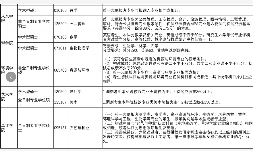 1、我校擬接收“少數民族骨干計劃”調劑生;擬接收調劑的專業為招生簡章中限定的除“風景園林、食品加工與安全、藝術設計、應用心理”以外的全日制專業學位招生專業。我校會根據我校及中國研招網調劑系統報名情況,結合可接收的學科專業,確定調劑學科專業和進入復試名單。
