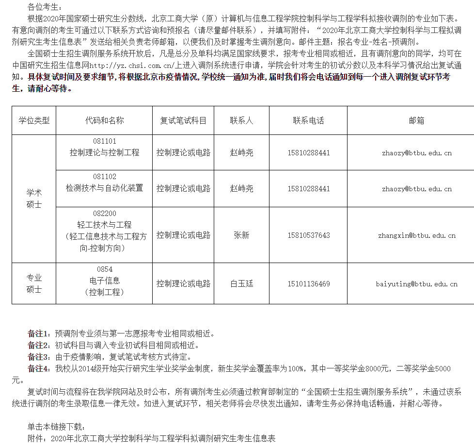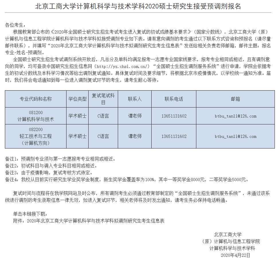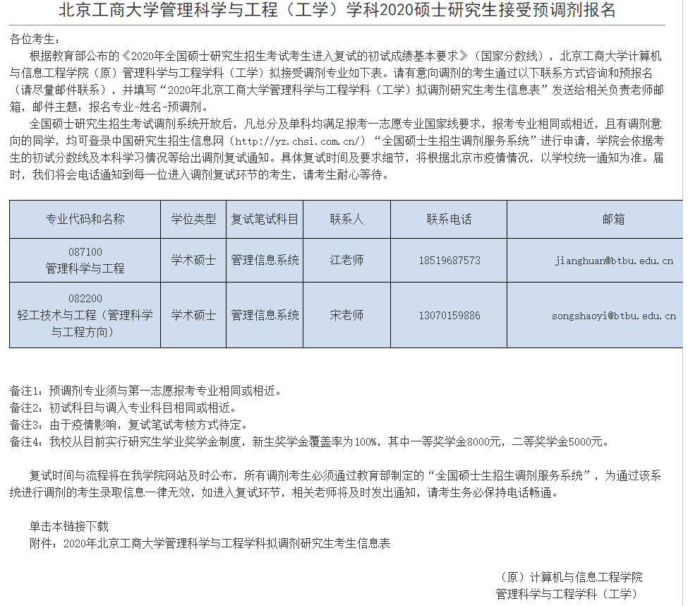 以上就是“2020考研調(diào)劑信息:北京工商大學計算機與信息工程學院2020年碩士研究生招生調(diào)劑信息”的全部內(nèi)容!更多考研調(diào)劑內(nèi)容,請關注考研調(diào)劑信息欄目