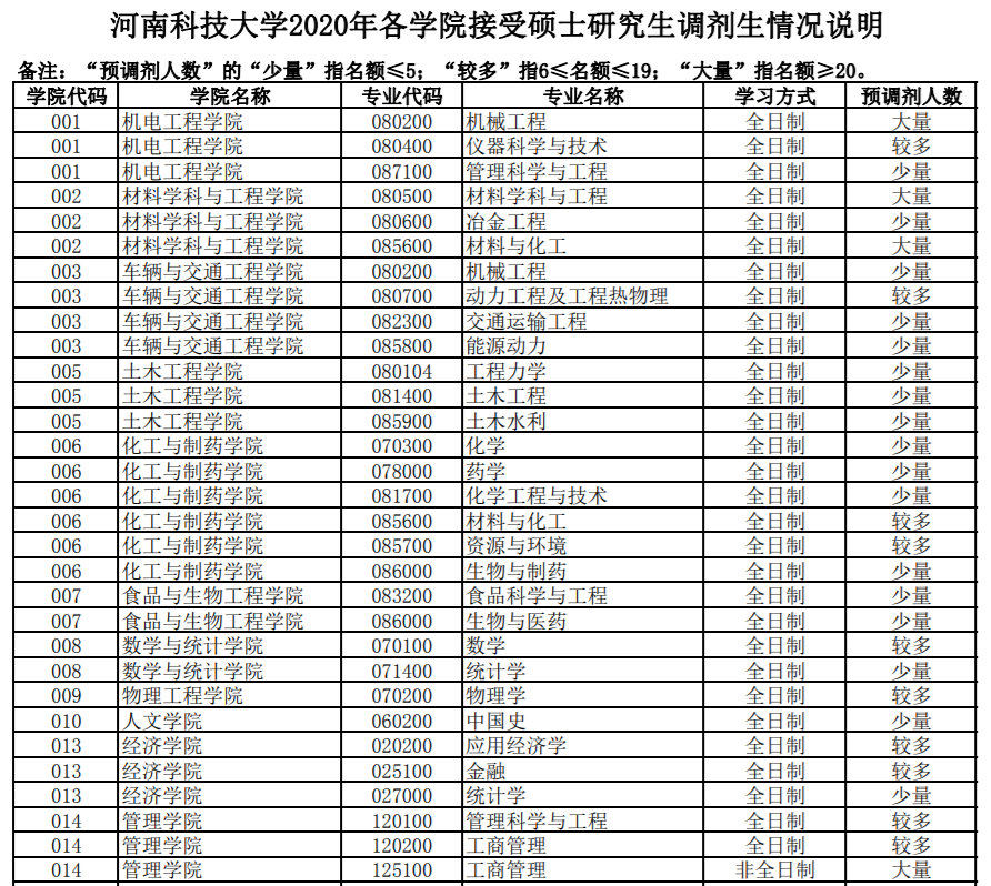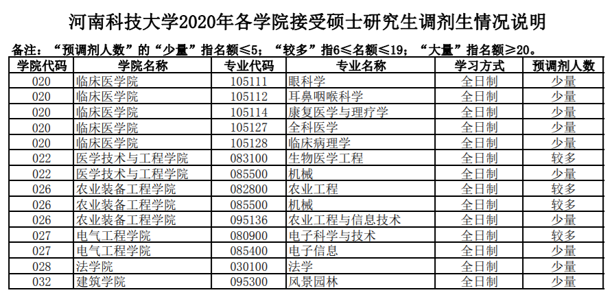 以上就是“2020考研調劑信息:河南科技大學2020年碩士研究生招生調劑信息”的全部內容!更多考研調劑內容,請關注考研調劑信息欄目