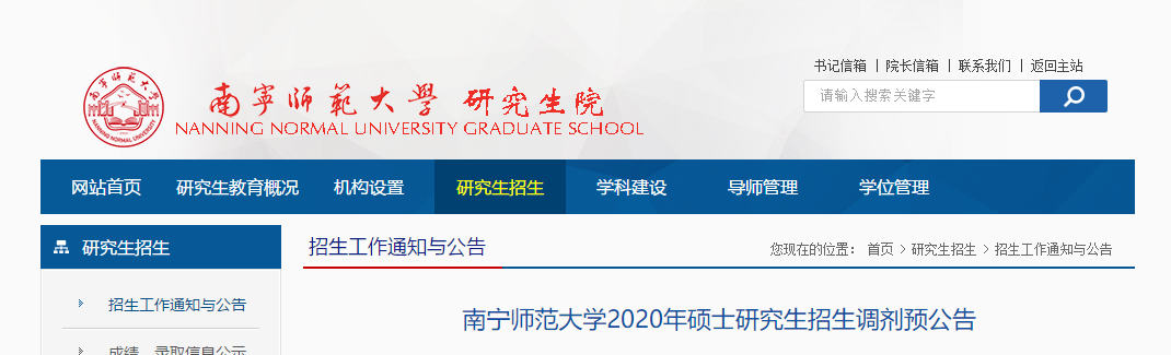 原標題:南寧師范大學2020年碩士研究生招生調劑預公告