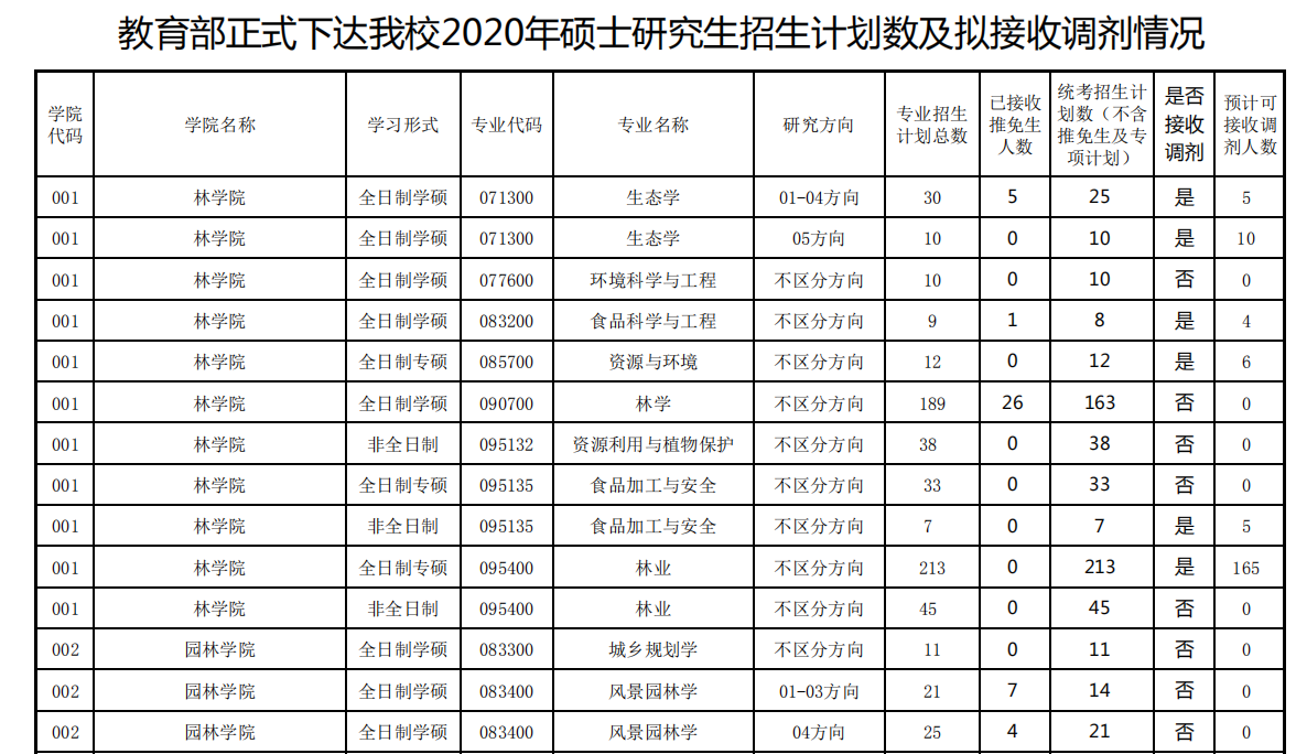 以上就是“2020考研調(diào)劑信息:東北林業(yè)大學(xué)2020年碩士研究生招生調(diào)劑信息”的全部內(nèi)容!更多考研調(diào)劑內(nèi)容,請關(guān)注考研調(diào)劑信息欄目