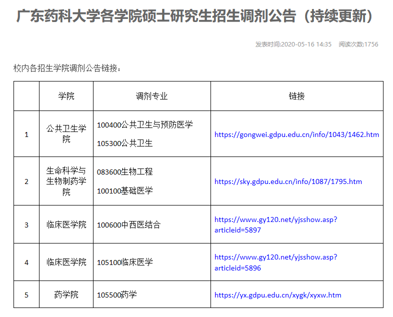 原標(biāo)題:廣東藥科大學(xué)各學(xué)院碩士研究生招生調(diào)劑公告(持續(xù)更新)