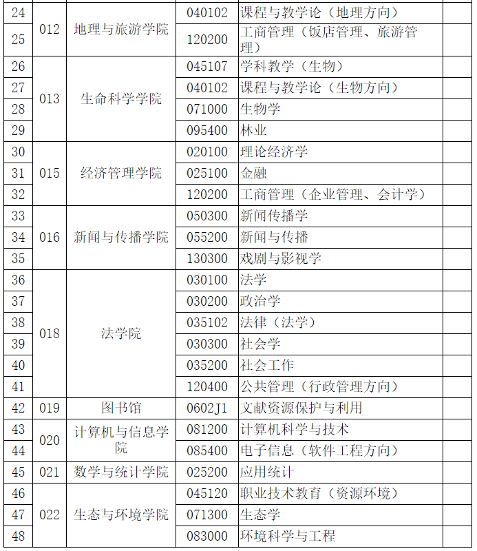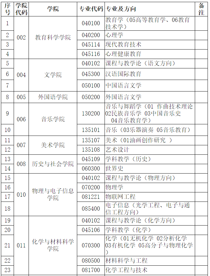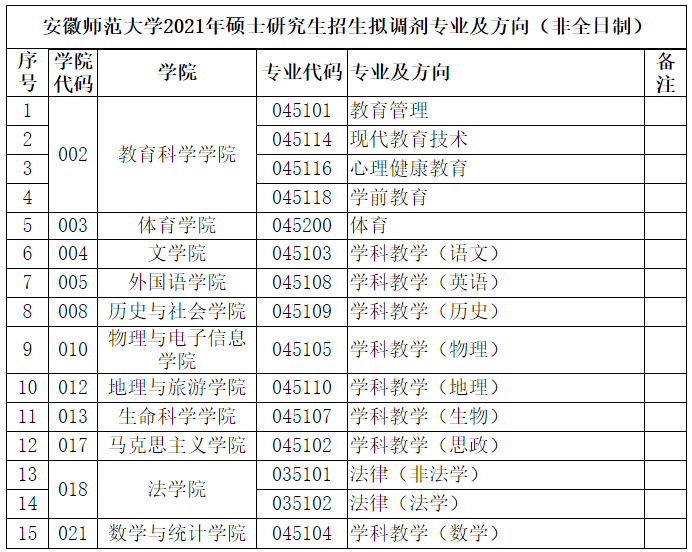 安徽師范大學(xué)2021年碩士研究生招生擬調(diào)劑專業(yè)及方向(全日制)