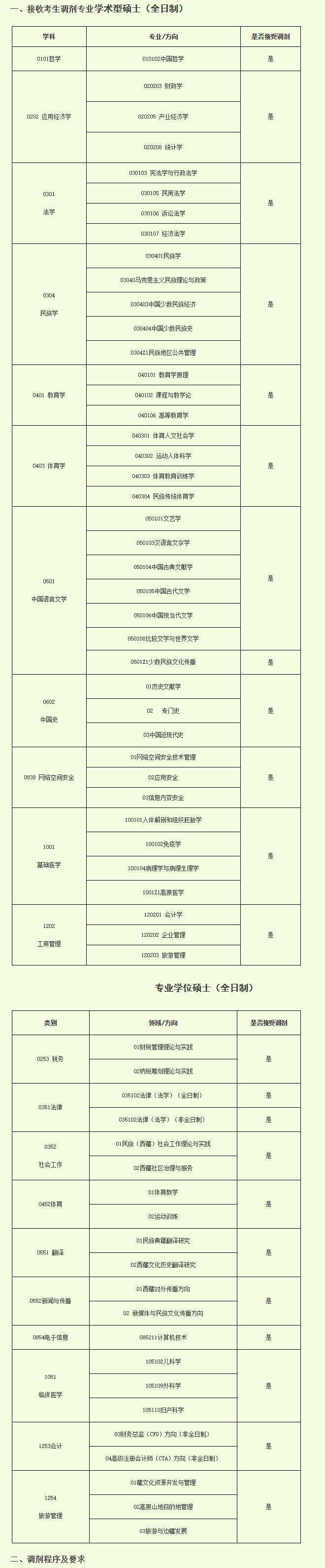 (3)法學(xué)(0301)接收具有主修法學(xué)專(zhuān)業(yè)且報(bào)考法學(xué)(0301)的考生調(diào)劑;