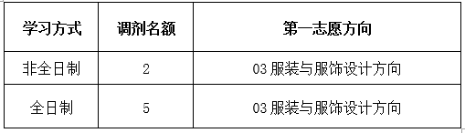 1、考生第一志愿報考專業(yè)方向為:03服裝與服飾設(shè)計方向,具體名額見下表:
