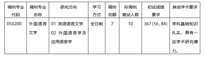4、外國語言文學(xué)專業(yè)不接收第一志愿報(bào)考專業(yè)學(xué)位碩士考生的調(diào)劑申請(qǐng)。