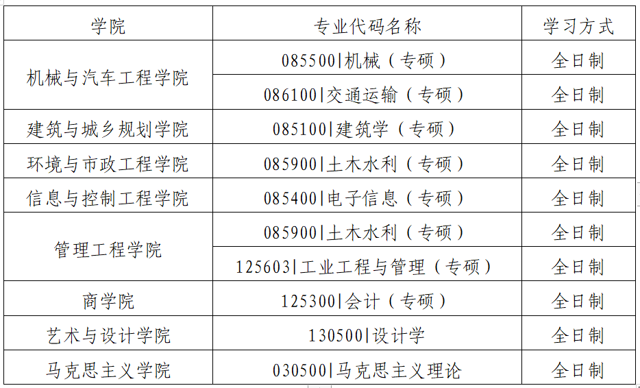 經我校研究除以下學院的部分學科專業暫不接收調劑外,其他學科專業均接收調劑。