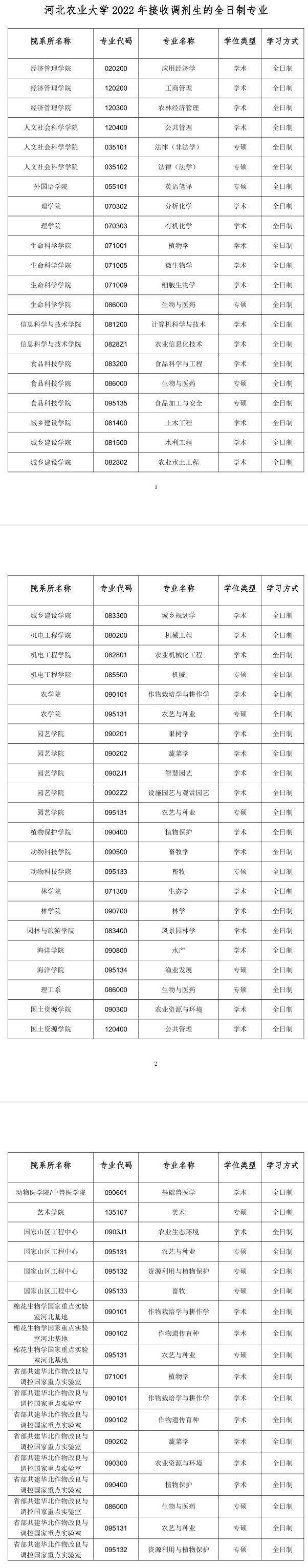 以上就是小編整理“2022考研調劑:河北農業大學2022年接收全日制調劑信息”的全部內容,想了解更多調劑信息,請持續關注本網站。