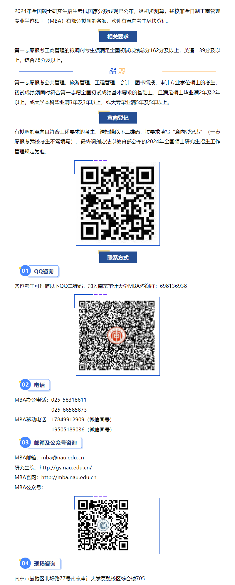 2024考研調劑:南京審計大學2024年非全日制MBA意向登記中