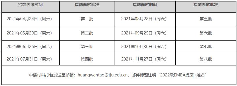 ① 提前面試申請表:在天津大學(xué)EMBA官方網(wǎng)站(http://emba.tju.edu.cn/)”資料下載”欄目下載填寫。
