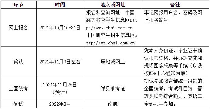 所有報(bào)考南航MBA的考生需參加全國聯(lián)考,還必須完成以下環(huán)節(jié)(具體時間以教育部及我校研究生院通知為準(zhǔn)):
