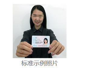 2.本人手持身份證照。拍攝時,手持本人身份證,將持證的手臂和上半身整個拍進照片,頭部和肩部要端正,頭發不得遮擋臉部或造成陰影,要露出五官;身份證上的所有信息清晰可見、完整(沒有被遮擋或者被手指捏?。?。樣照如下: