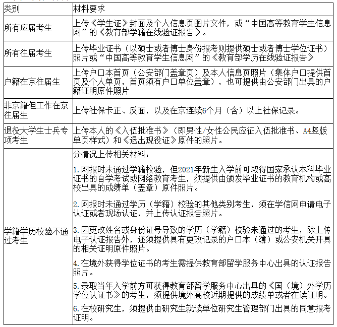 (三)考生須于上述規定時間通過網上確認平臺,完成本人的“核對網報信息、上傳本人準考證照片、上傳身份證照片、上傳手持身份證照片及其他相關材料照片”等手續,逾期不再補辦。
