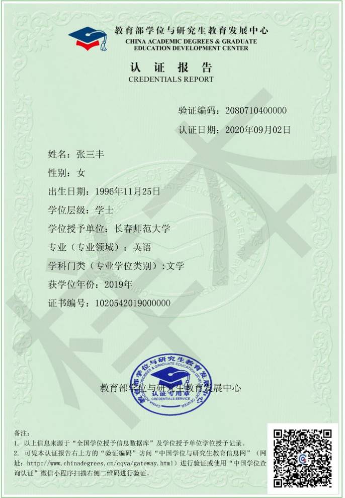 (2)往屆畢業生(含軍校畢業生):上傳“中國高等教育學生信息網”的《教育部學歷證書電子注冊備案表》或《中國高等教育學歷認證報告》(有效期至2020年11月11日)。