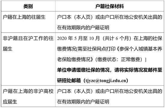 2.報考同濟大學且能夠提供2020年5月至10月在上海社保正常繳費情