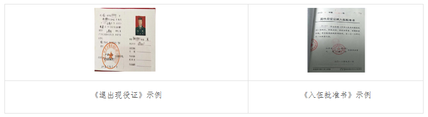 ★5.報考“退役大學生士兵”專項計劃的考生,必須提交《退出現(xiàn)役證》原件和《入伍批準書》原件或復印件(復印件需加蓋檔案部門公章)的照片。
