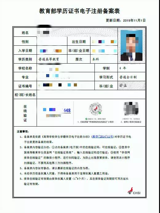 《教育部學(xué)籍在線驗(yàn)證報(bào)告》樣例: