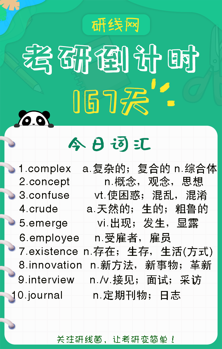 以上是研線網為考生整理的“2020考研英語詞匯高頻詞匯(19)”相關內容,希望對大家有幫助,研線網小編預祝大家都能取得好成績!更多英語詞匯相關內容盡在研線網!