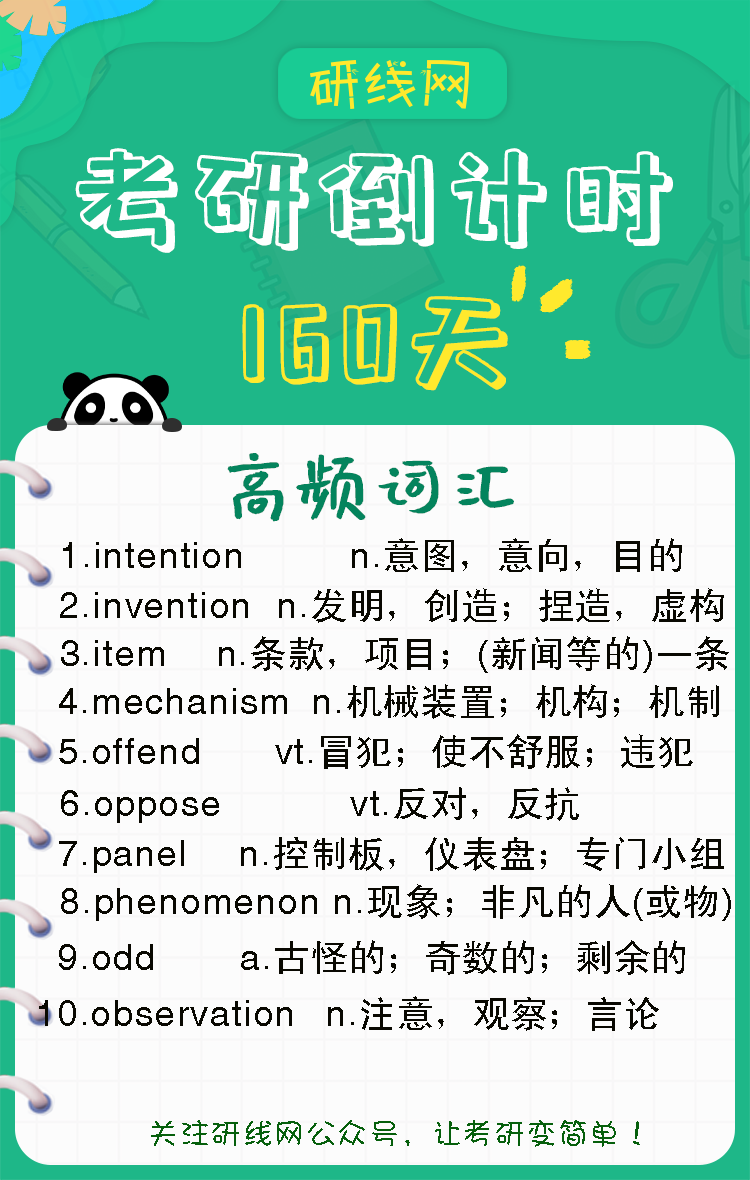 以上是研線網(wǎng)為考生整理的“2020考研英語(yǔ)詞匯高頻詞匯(26)”相關(guān)內(nèi)容,希望對(duì)大家有幫助,研線網(wǎng)小編預(yù)祝大家都能取得好成績(jī)!更多英語(yǔ)詞匯相關(guān)內(nèi)容盡在研線網(wǎng)!