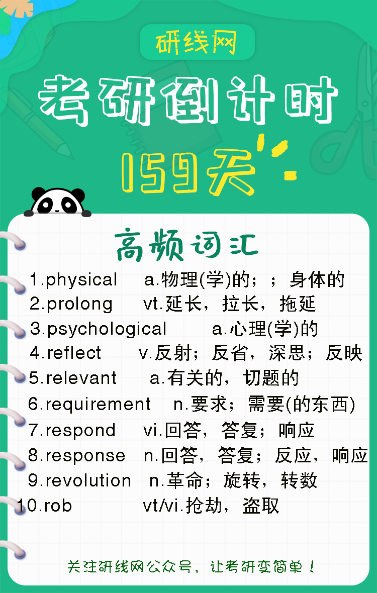 以上是研線網為考生整理的“2020考研英語詞匯高頻詞匯(27)”相關內容,希望對大家有幫助,研線網小編預祝大家都能取得好成績!更多英語詞匯相關內容盡在研線網!