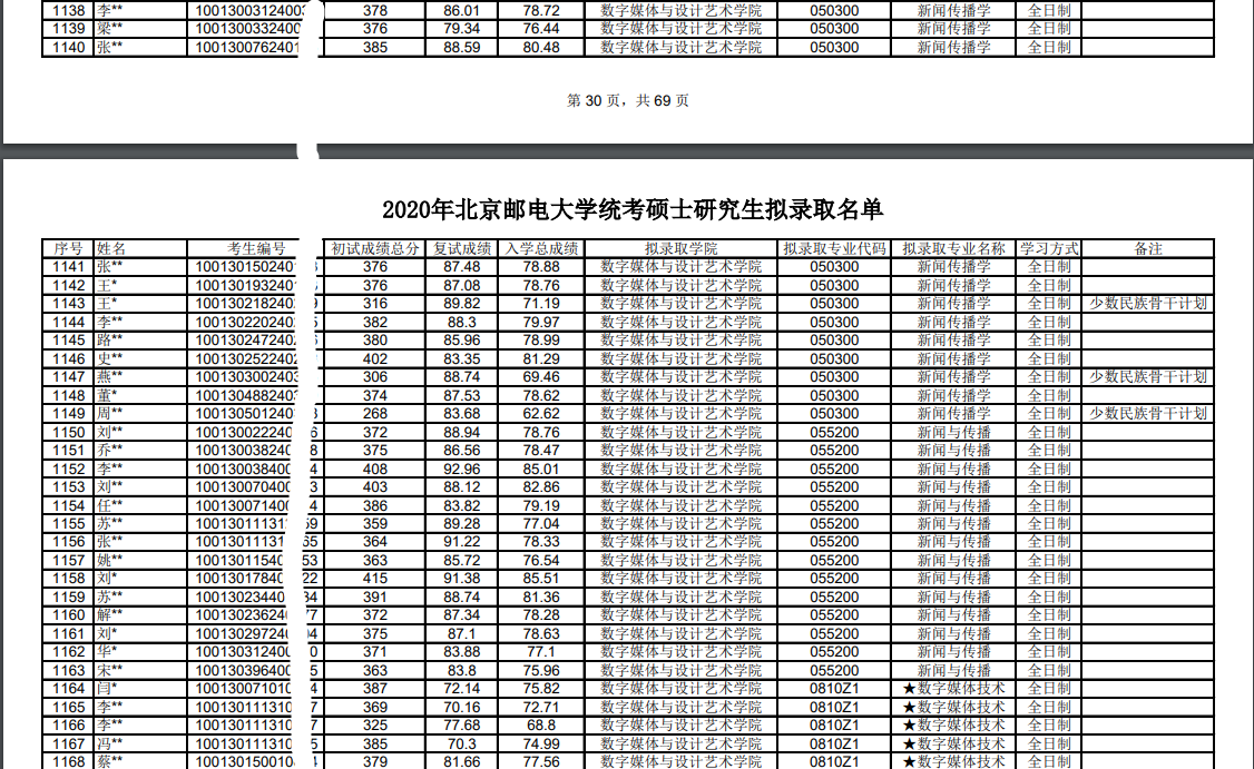 以上就是“2020考研擬錄取名單:北京郵電大學(xué)數(shù)字媒體與設(shè)計藝術(shù)學(xué)院2020年新傳碩士擬錄取名單”的全部內(nèi)容,同學(xué)們記得關(guān)注一下。考研加油!