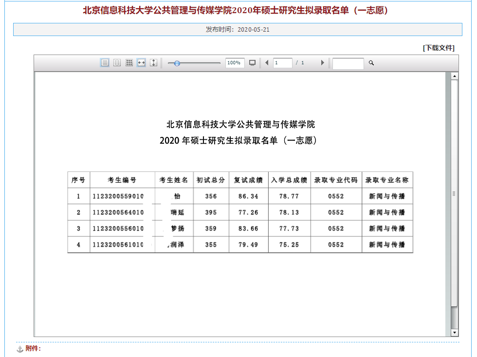 原文標題:北京信息科技大學公共管理與傳媒學院2020年碩士研究生擬錄取名單(一志愿)