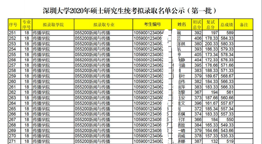 以上就是“2020新傳擬錄取名單:深圳大學傳播學院新傳專碩(MJC)擬錄取名單公示”的全部內容,同學們記得關注一下。考研加油!