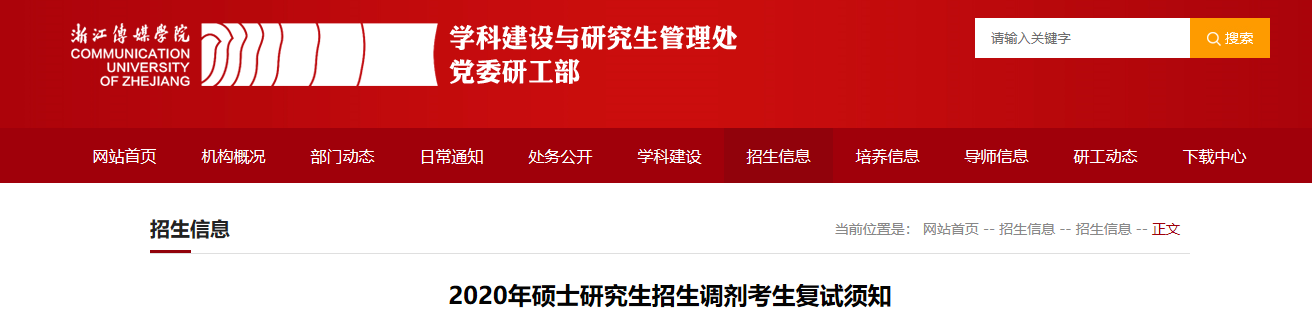 浙江傳媒學院2020年碩士研究生招生新聞與傳播專碩有一定調劑名額(詳見調劑公告-待發(fā)布)。為確保調劑復試順利進行,現(xiàn)將調劑考生準備事項通知如下: