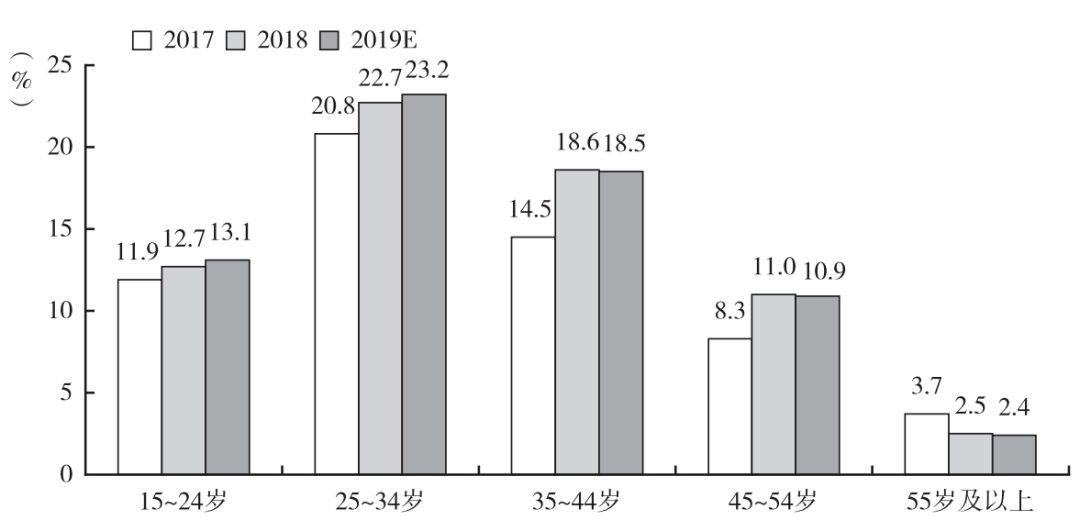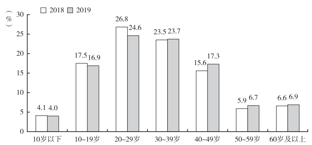 圖4:2018-2019年中國互聯網用戶年齡結構
