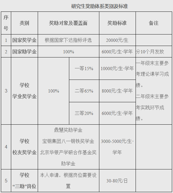 研究生獎(jiǎng)助的類別、標(biāo)準(zhǔn)及覆蓋面見下表: