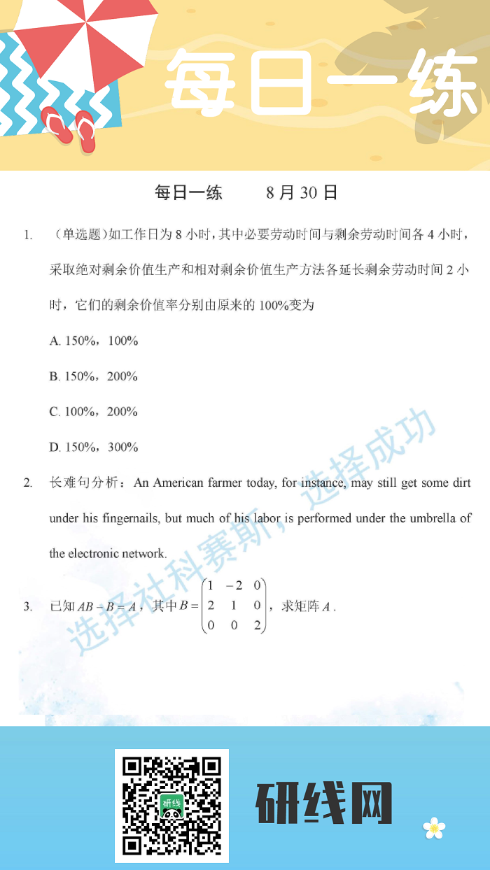 8月30日:2020考研學碩每日一練以及答案