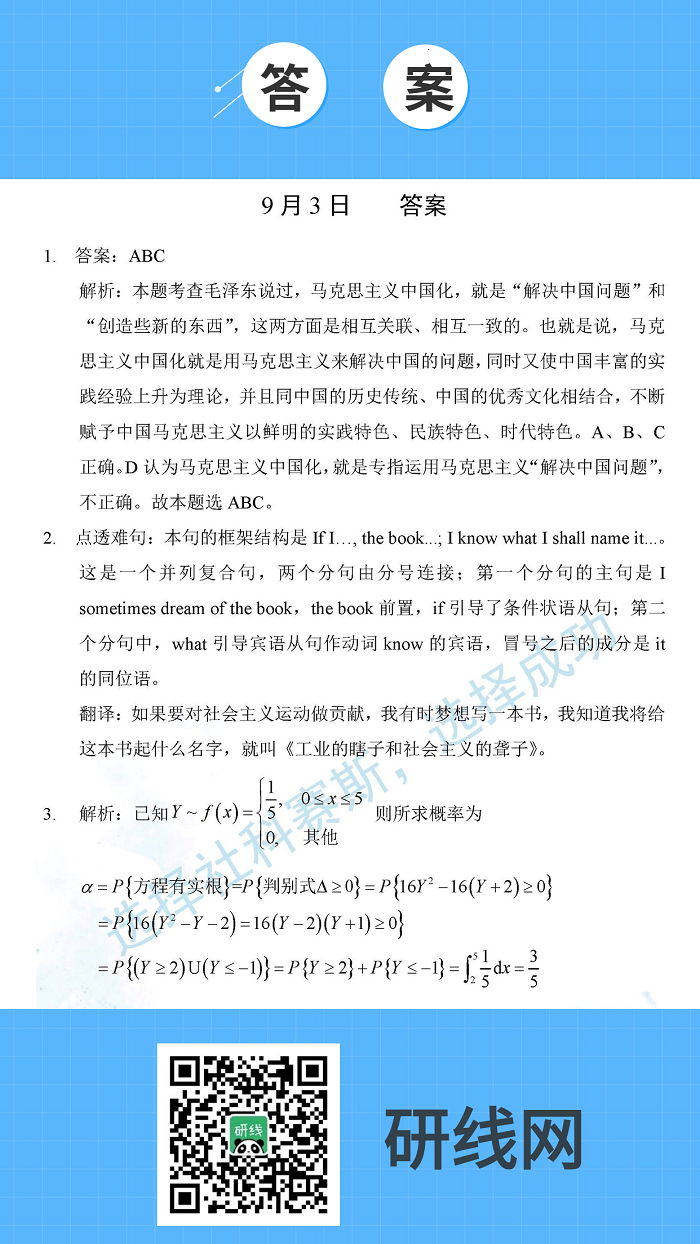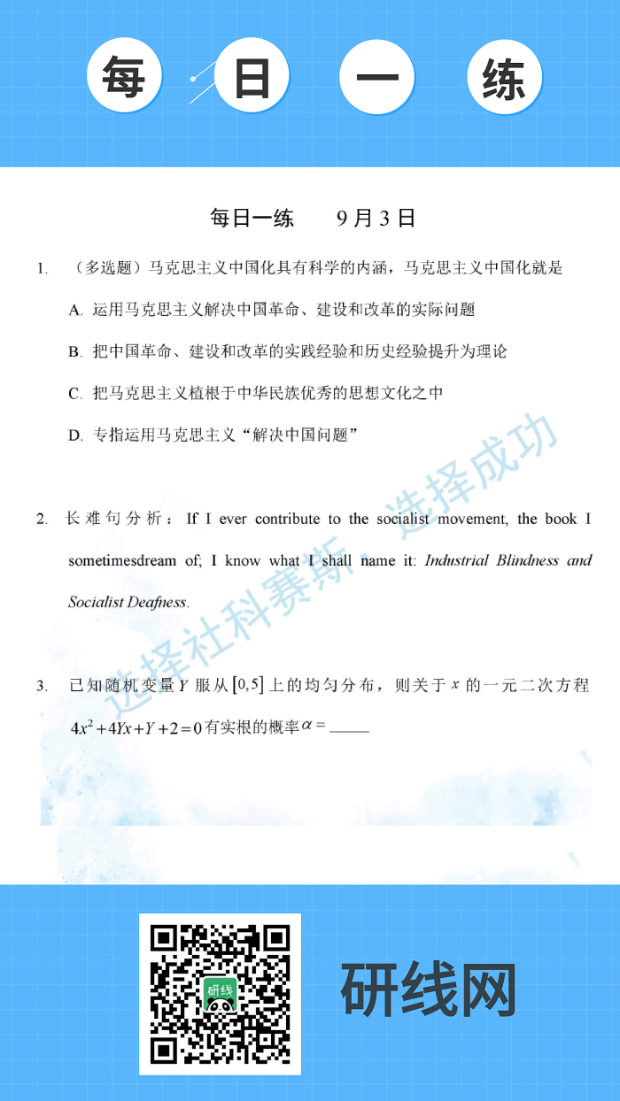9月3日:2020考研學(xué)碩每日一練以及答案