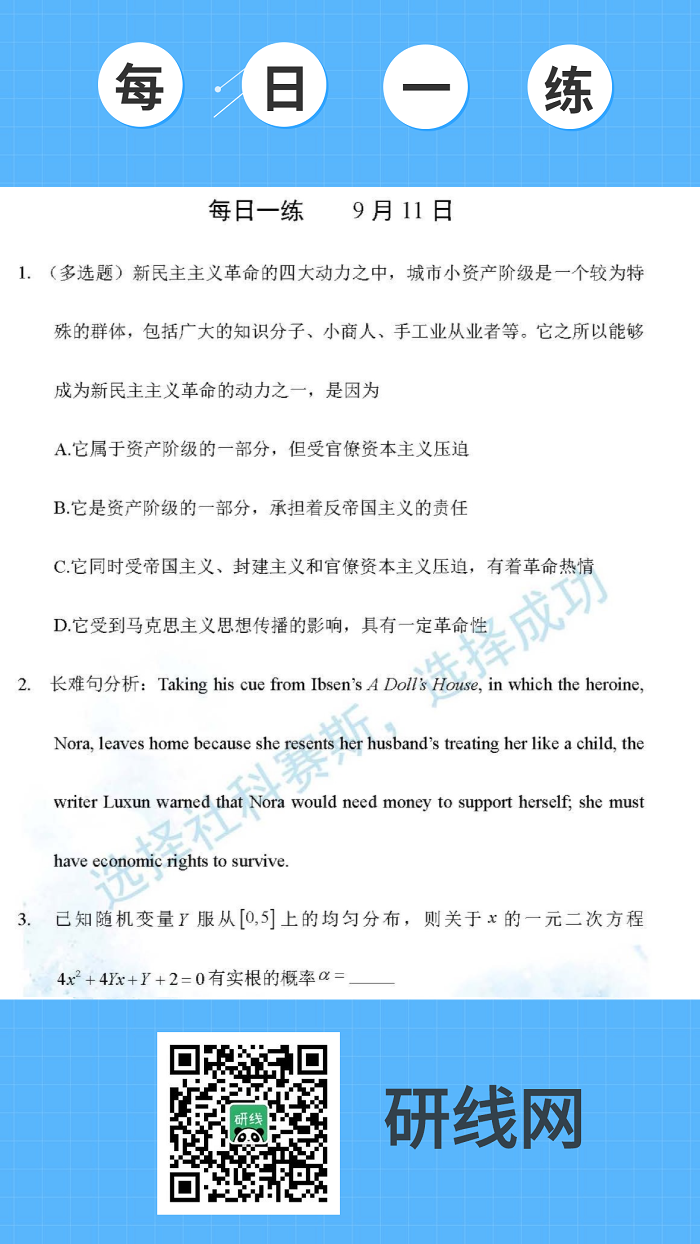 以上就是今日每日一練的全部內容,跟著每日一練,考研輕松復習!更多考試練習,點擊考研每日一練