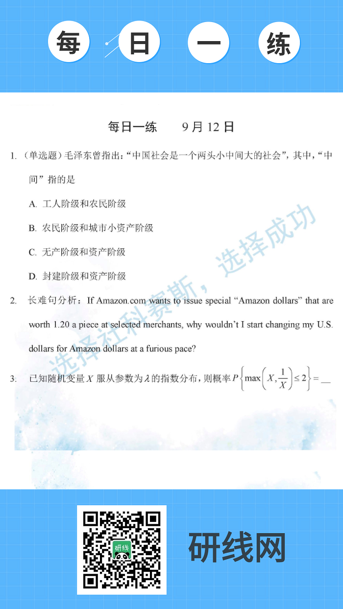 為了更好的復(fù)習(xí)和鞏固已經(jīng)學(xué)過的知識(shí),研線網(wǎng)小編為大家整理出幾道題,作為每日的練習(xí),希望能夠幫助到同學(xué)們哦!