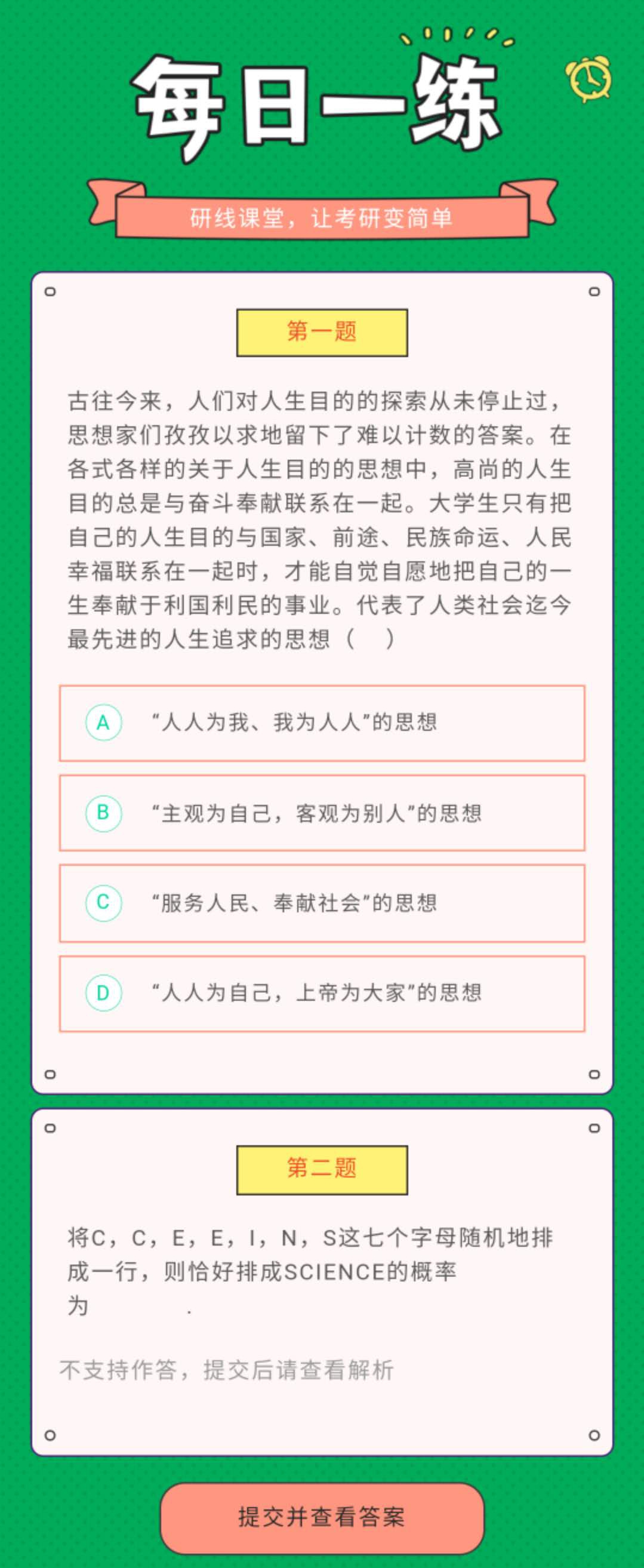 點擊進入:研線課堂萬題庫,每日習題不重復。全面題型任你刷,真題解析隨便看。