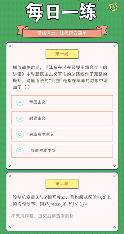 點擊進入:研線課堂萬題庫,每日習題不重復。全面題型任你刷,真題解析隨便看。