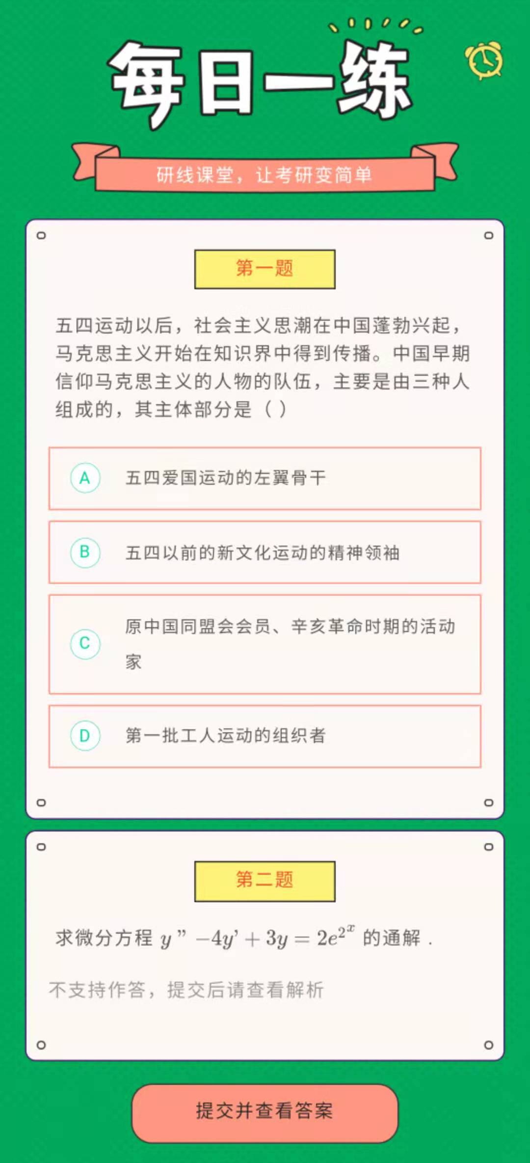 點擊進入:研線課堂萬題庫,每日習題不重復。全面題型任你刷,真題解析隨便看。