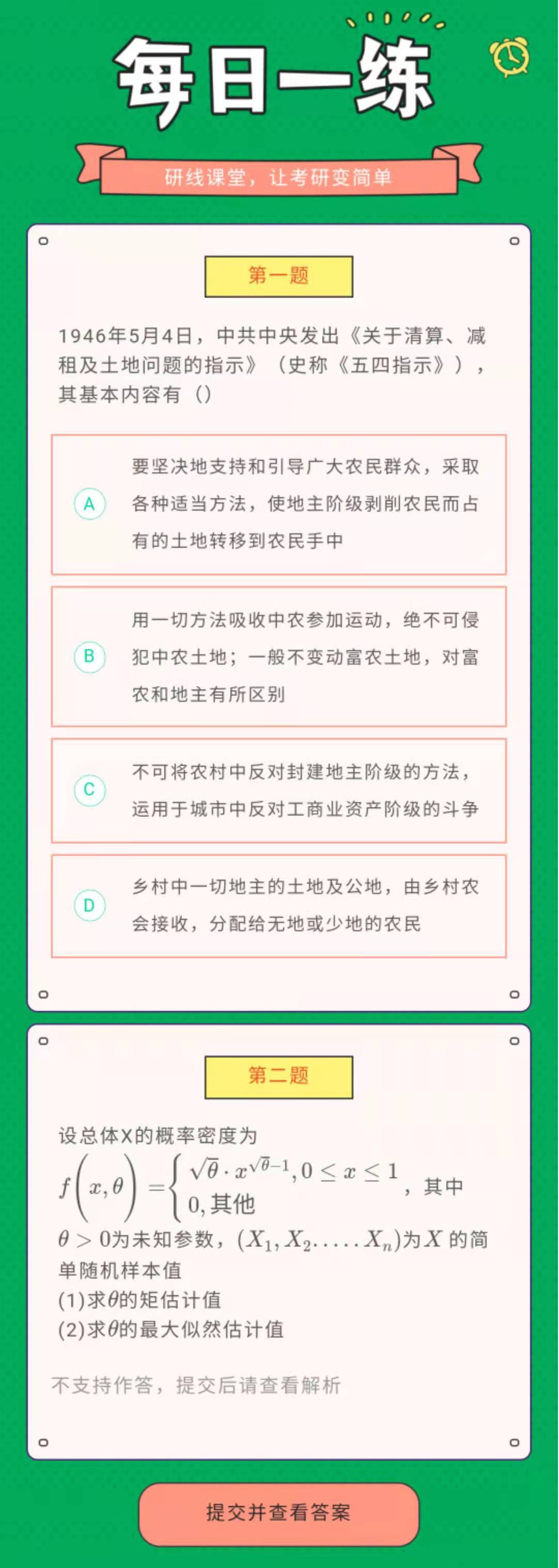 以上就是今日每日一練的全部?jī)?nèi)容,跟著每日一練,考研輕松復(fù)習(xí)!更多考試練習(xí),點(diǎn)擊考研每日一練!