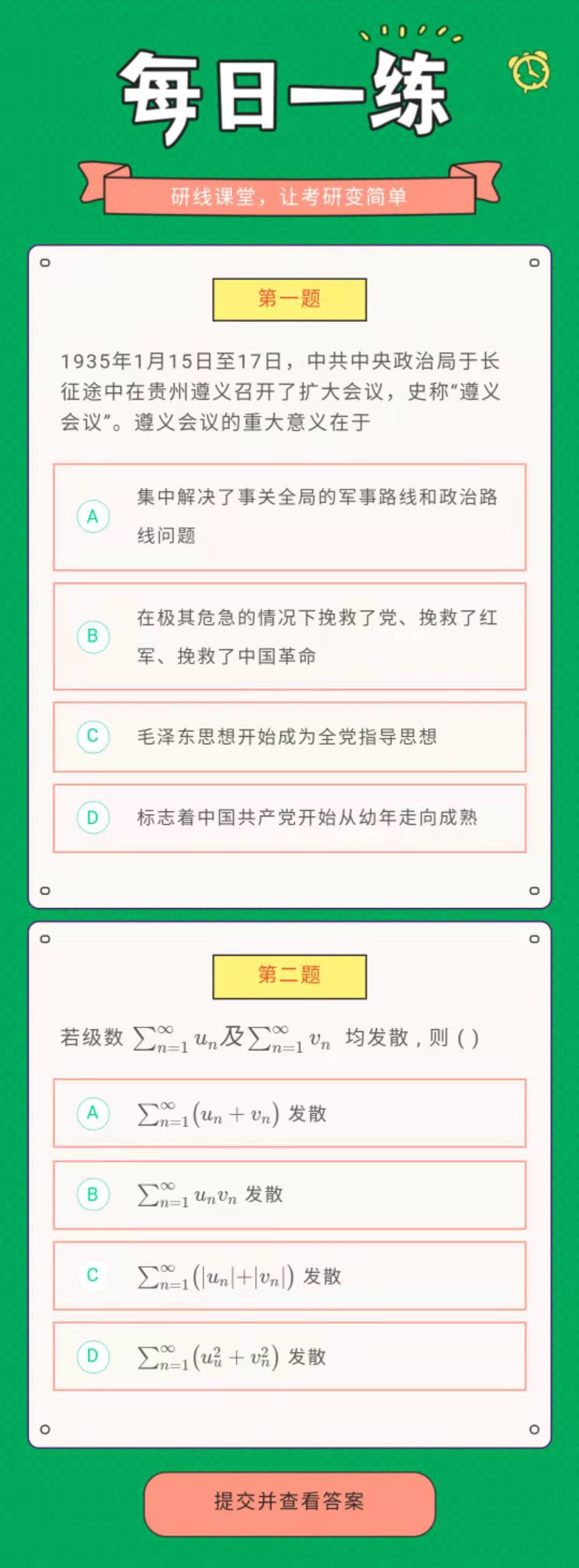 點擊進入:研線課堂萬題庫,每日習題不重復。全面題型任你刷,真題解析隨便看。