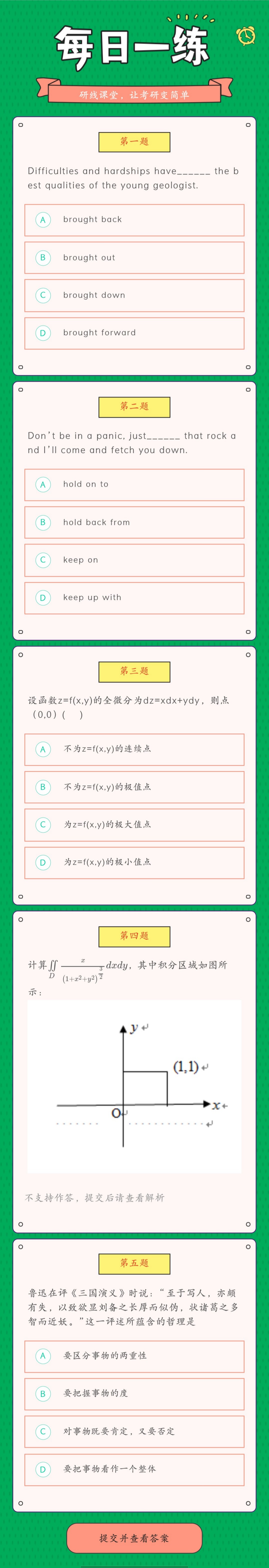 以上就是今日每日一練的全部?jī)?nèi)容,跟著每日一練,考研輕松復(fù)習(xí)!更多考試練習(xí),點(diǎn)擊考研每日一練!