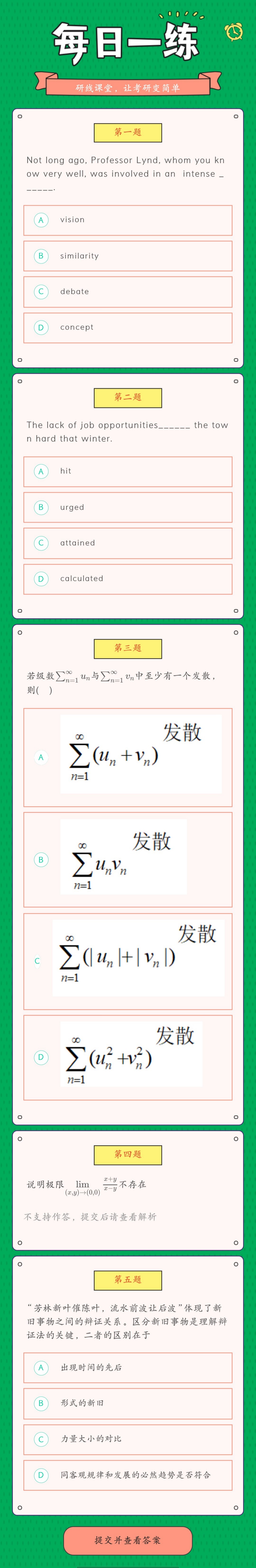 以上就是今日每日一練的全部?jī)?nèi)容,跟著每日一練,考研輕松復(fù)習(xí)!更多考試練習(xí),點(diǎn)擊考研每日一練!