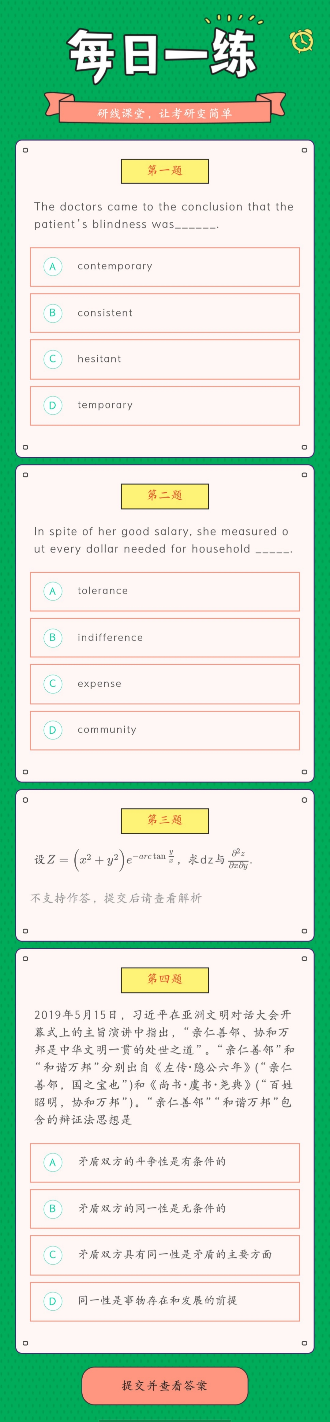 以上就是今日每日一練的全部內(nèi)容,跟著每日一練,考研輕松復習!更多考試練習,點擊考研每日一練!