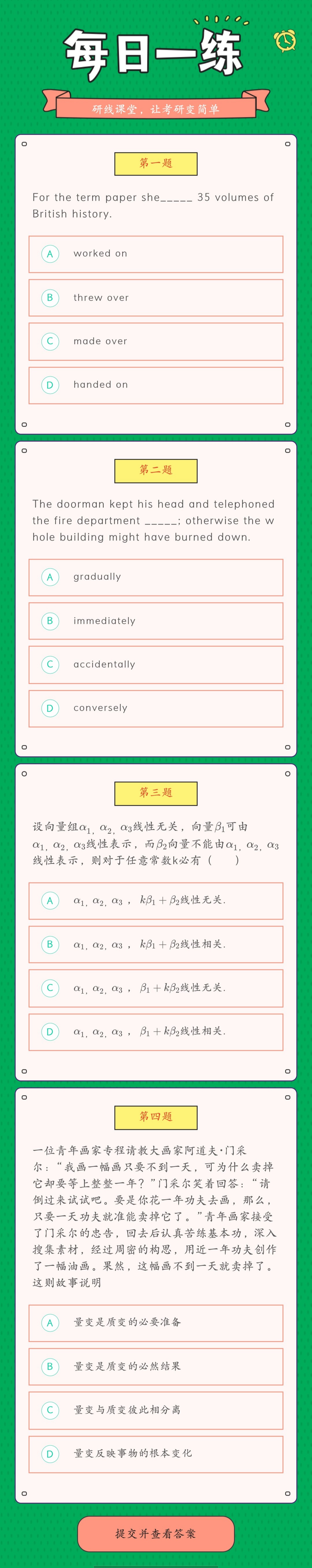 為了更好的復習和鞏固已經學過的知識,研線網小編為大家整理出幾道題,作為每日的練習,希望能夠幫助到同學們哦!