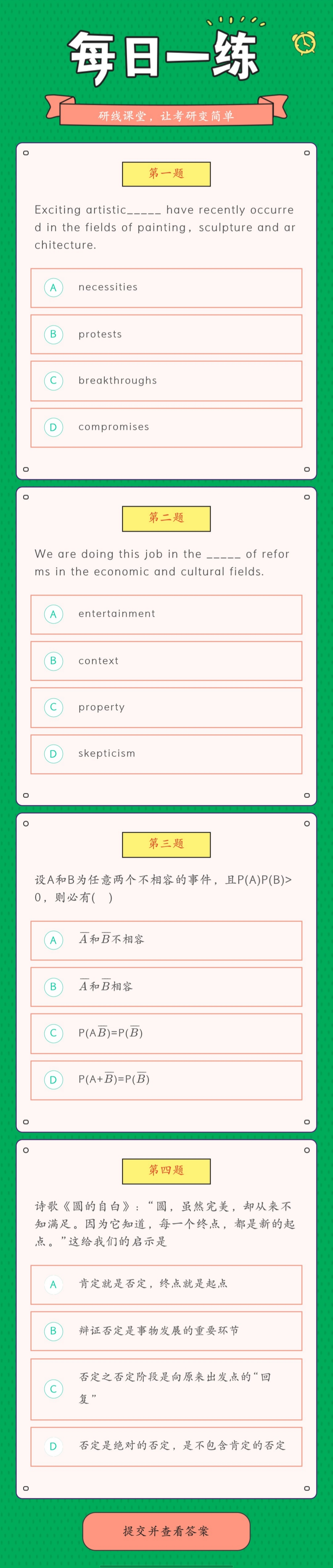 以上就是今日每日一練的全部?jī)?nèi)容,跟著每日一練,考研輕松復(fù)習(xí)!更多考試練習(xí),點(diǎn)擊考研每日一練