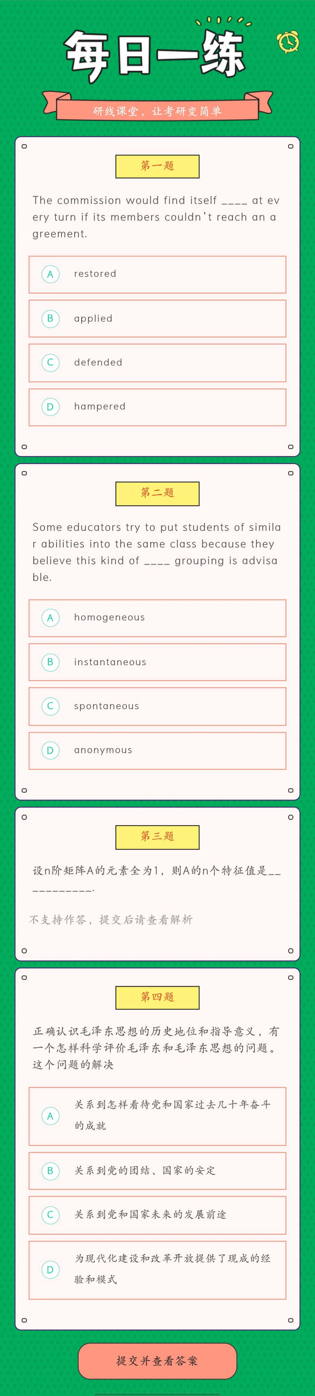 以上就是今日每日一練的全部內(nèi)容,跟著每日一練,考研輕松復(fù)習(xí)!更多考試練習(xí),點擊考研每日一練!